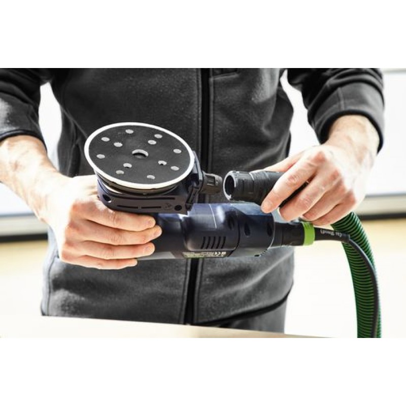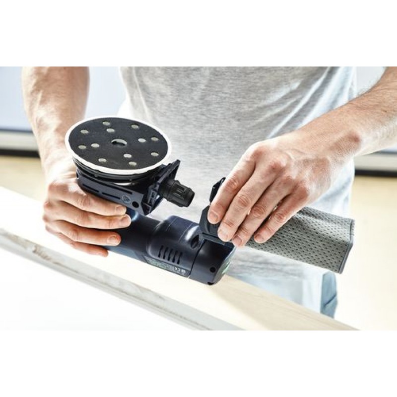 - Se síťovým adaptérem plug it jako bruska s neomezenou dobou chodu v nepřetržitém elektrickém provozu – ideální v kombinaci s mobilním vysavačem Festool ve vnitřním prostředí