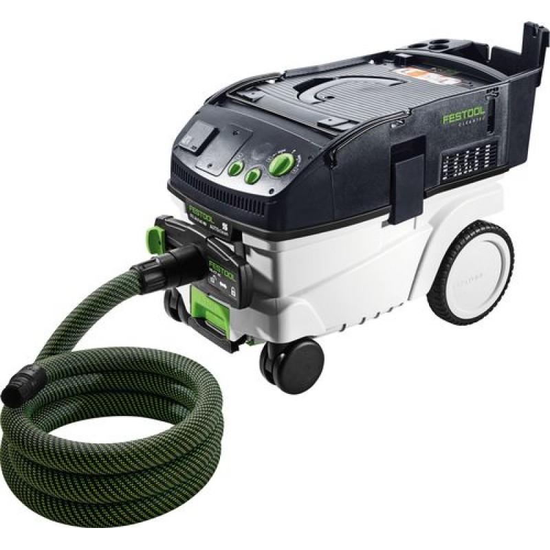- Optimální přizpůsobení pro elektrické nářadí díky zásuvce pro připojení nářadí, spínací automatice se zpožděním zapínání a vypínání a plynulé regulací sacího výkonu